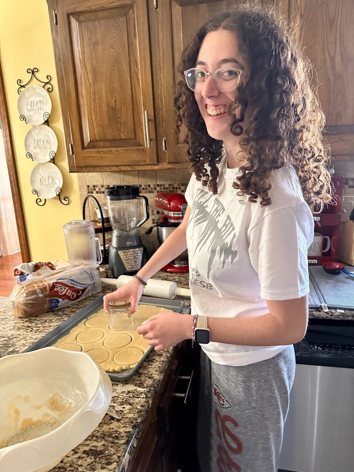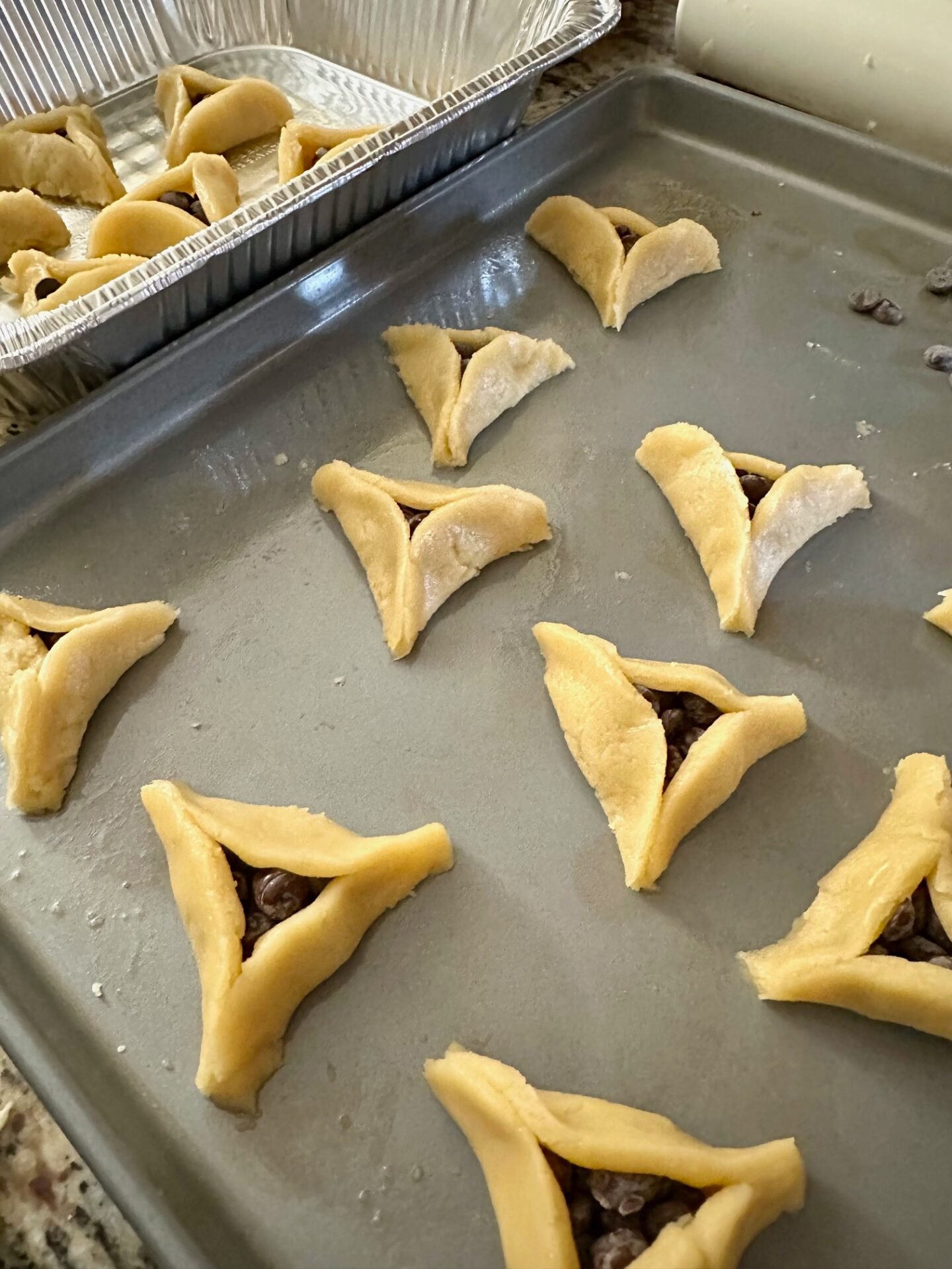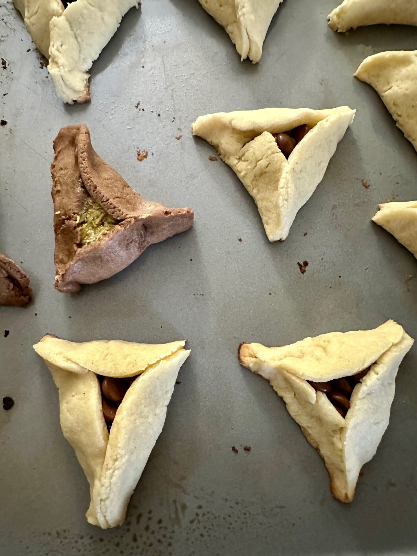 Gabbie came home for spring break last week and arranged it so that she could be here for Purim. The first thing she did was make hamentashen!