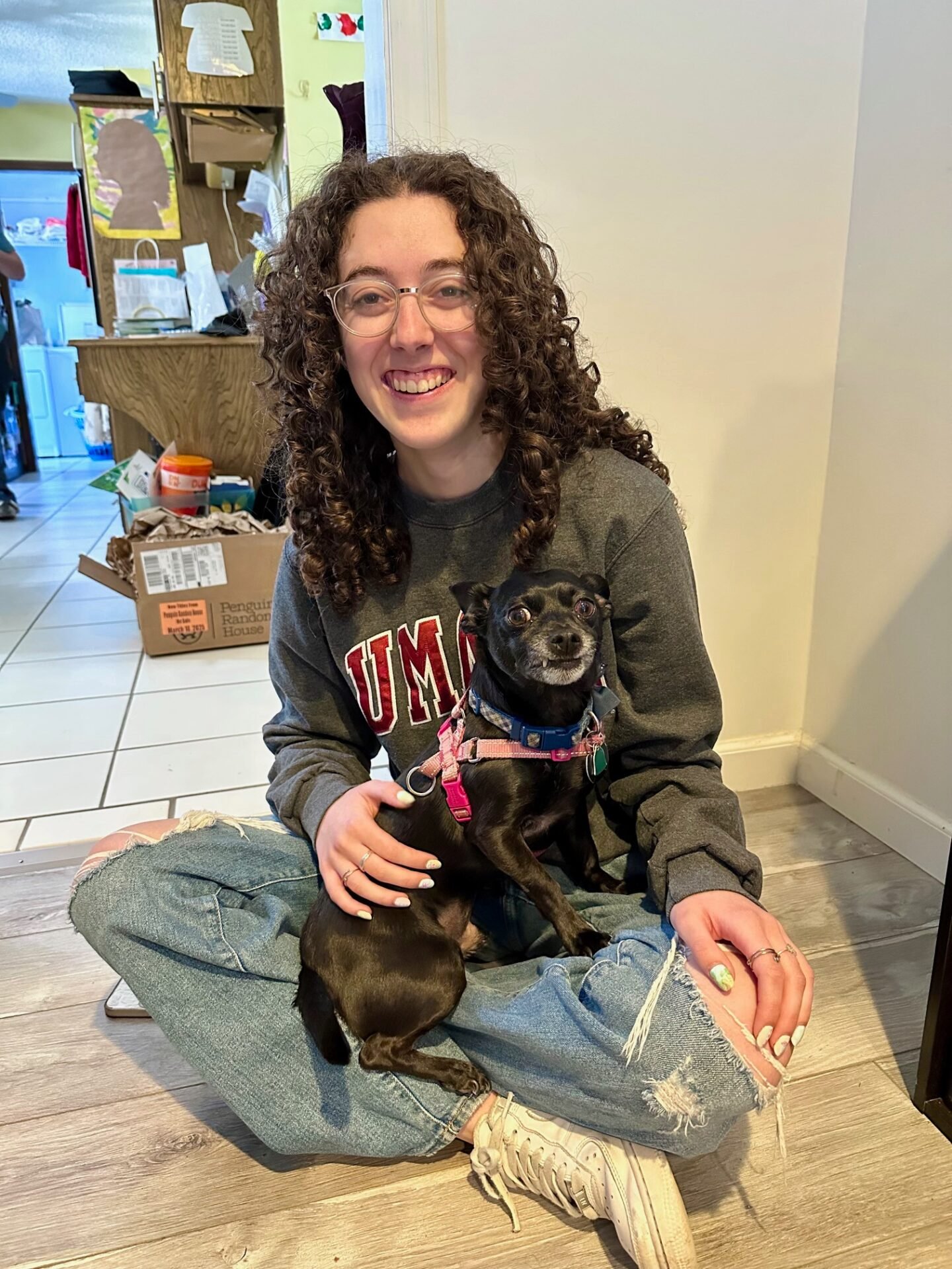 This week we have a new dog visitor here. Here is when he first got here and met Gabbie.