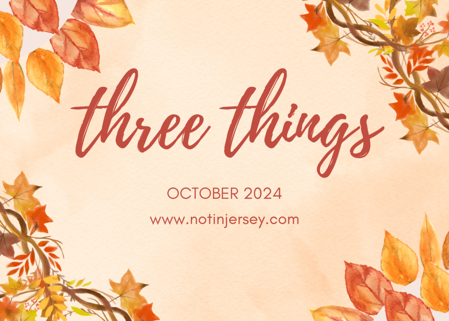 I let a lot of time pass since my last Three Things post! I also let a lot of time pass since my last blog post last week, being that I was offline for the first days of Sukkot and then had nothing to share yesterday. I’ll be off again for the last days of Sukkot this Thursday and Friday, so I wanted to make sure to post something today. I decided a Three Things Tuesday post was a good plan.